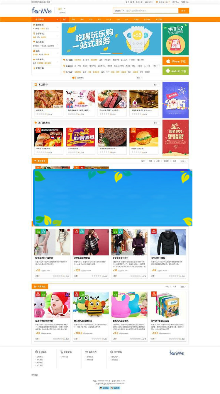 全新UI设计,重新界面布局,非常不错的O2O本地生活服务平台网站程序,系统主要功能包括:团购、商城、同城活动、商家、达人、讨论租、发现(分享)、优惠券、积分商城等。该程序支持手机浏览器访问,希望打造生活服务类网络平台的朋友不妨试试这个程序。支持分销商、分销、外卖、到店支付等功能!