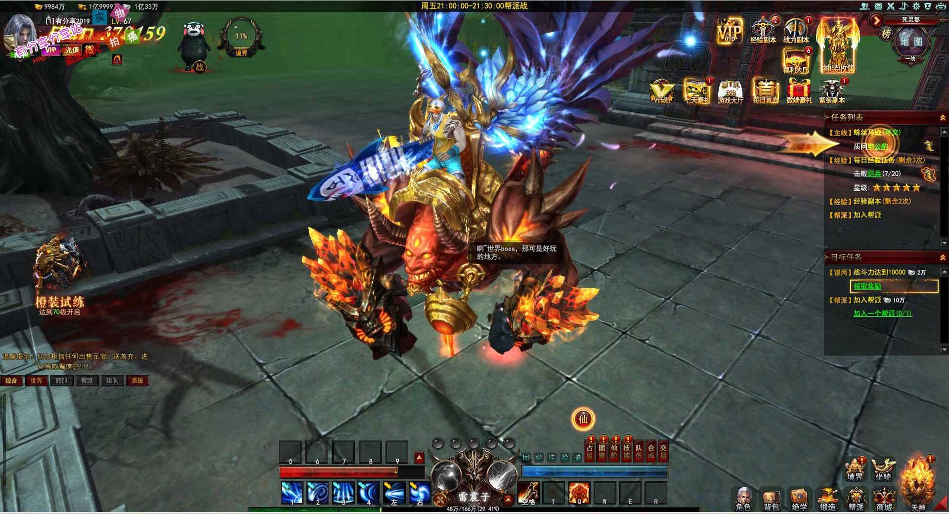 《大青云》采用领先的Fancy3D引擎技术,颠覆史诗,带入超级剧情,无视觉刺激,为玩家呈现360真实3D奇异世界。 24小时自由搏击,无锁技能,随意释放力量。变身成神,变身武器,修炼法宝,神秘星图,玩多种有趣的游戏,颠覆你的想象力。 封神将军纣王,妲己,查娜,雷震子,杨戬,陪着你到处走,暴力封神!